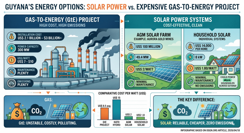 The Kaieteur News editorial of Saturday April 11 on the Aurora Gold Mines (AGM)[i] solar farm displays current evidence of my advocacy of solar power instead of the expensive Gas-to-Energy (GtE) project, which enriches foreign investors and contractors. 12 years ago, I set up a small home solar power system, which still supplies…