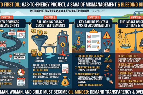 Column 178 dated 3 April 2026 The report of a quiet settlement – some US$82 million paid following arbitration in the Gas-to-Energy Project – ought to give the country pause. Not because disputes arise in projects of this scale – they do – but because of how early, how quietly, and how expensively this one…