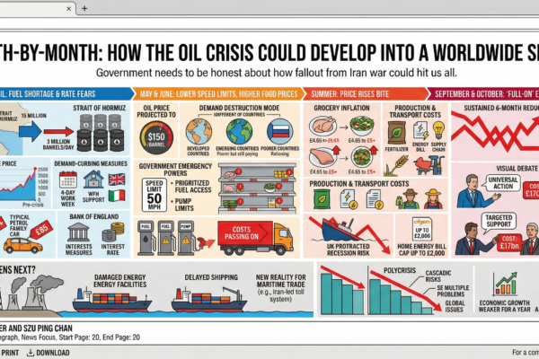 Global Oil Crisis: Timeline of a Slump The Domino Effect Tracking the global slump from the Strait of Hormuz closure 1 2 3 4 March & April May & June Summer Sept & Oct Supply Deficit 3M Barrels/Day Oil Price (Brent Crude) $110 / Barrel Societal & Economic Impacts