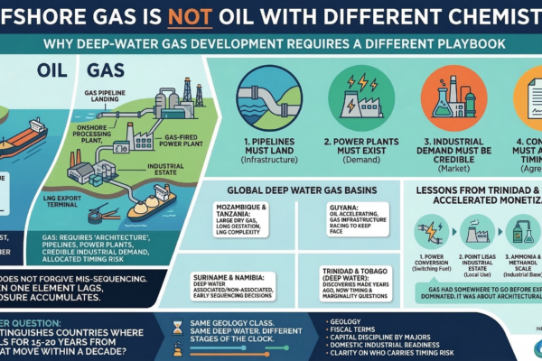 We’ve recently published the first article in a new series examining offshore gas development in emerging producer states. Discovery is the easy part. Development — especially in deep water, without ready markets — is where the real variables emerge. Oil can move fast. Gas requires architecture: Pipelines must land. Power plants must exist. Industrial demand…