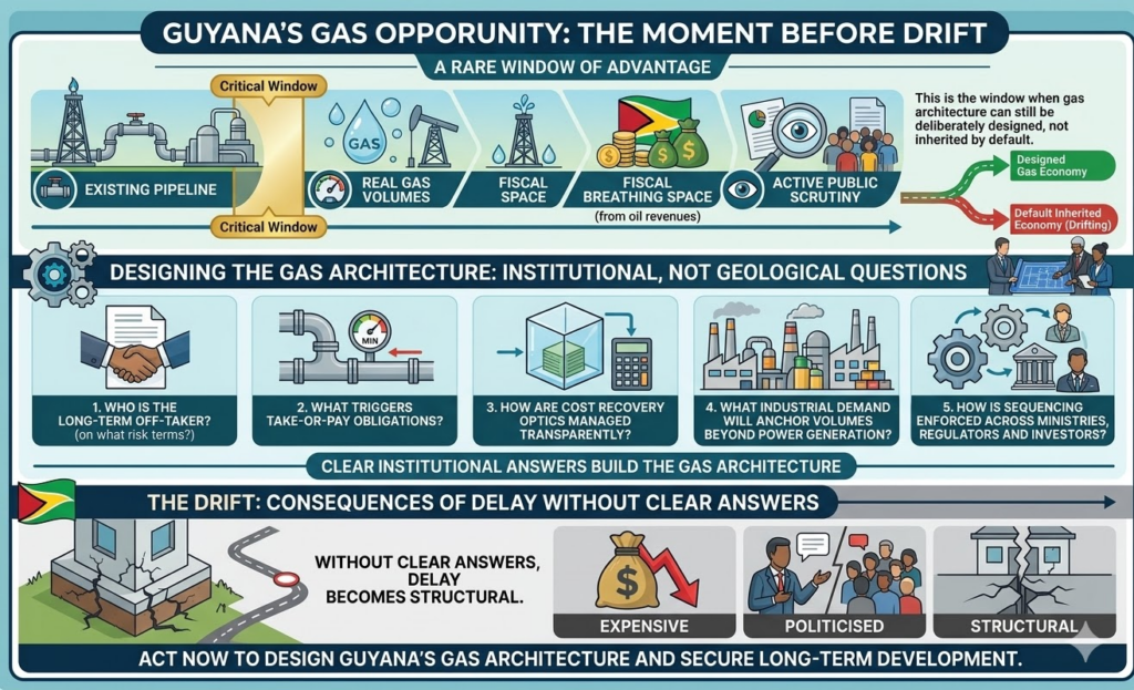 Guyana now stands at a rare advantage point. The pipeline exists. The gas volumes are real. Oil revenues provide fiscal breathing space. Public scrutiny is active.