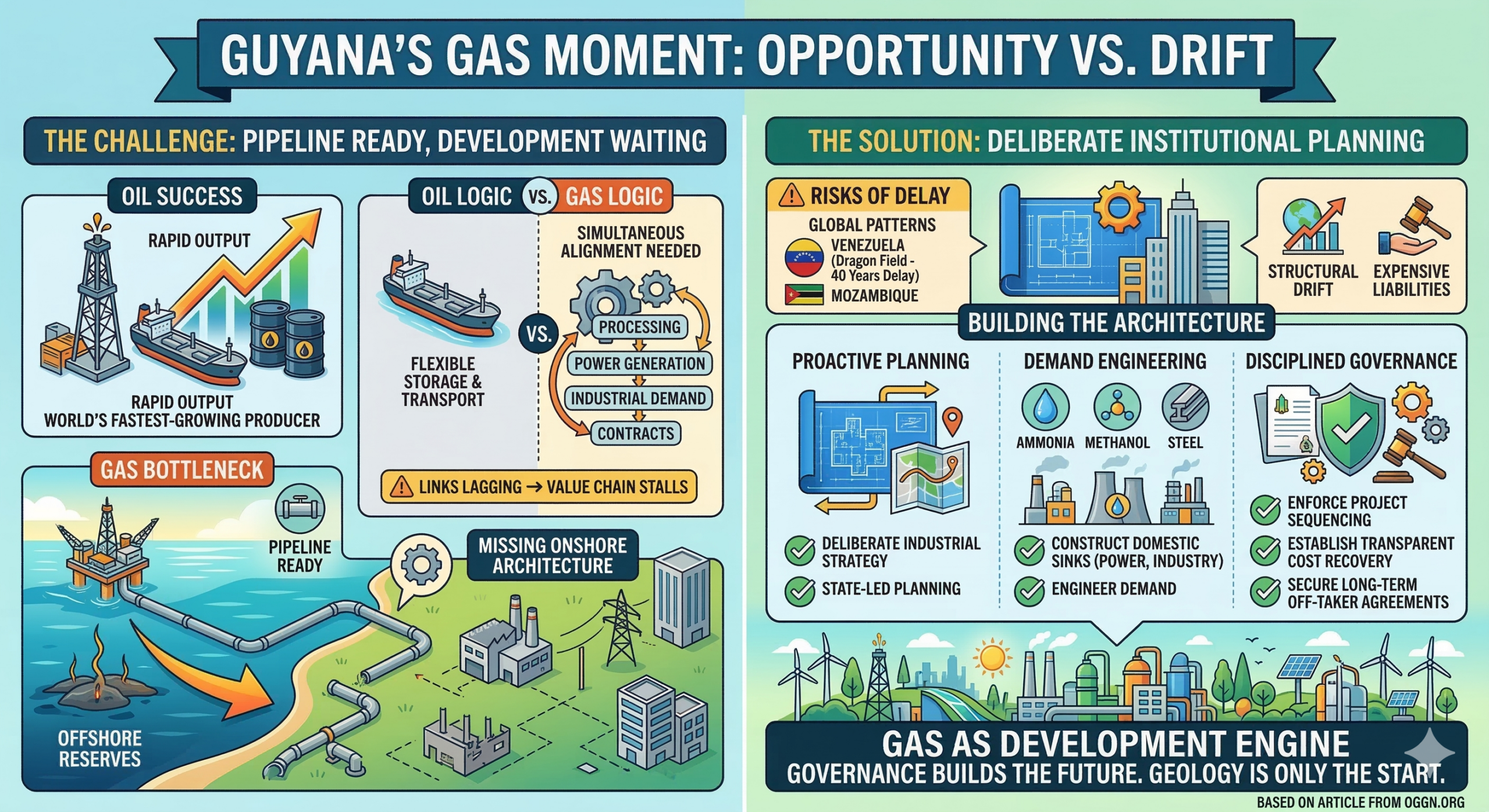 But every delayed gas province once stood exactly where Guyana stands now: confident in reserves, optimistic about infrastructure, assuming markets would naturally follow.
