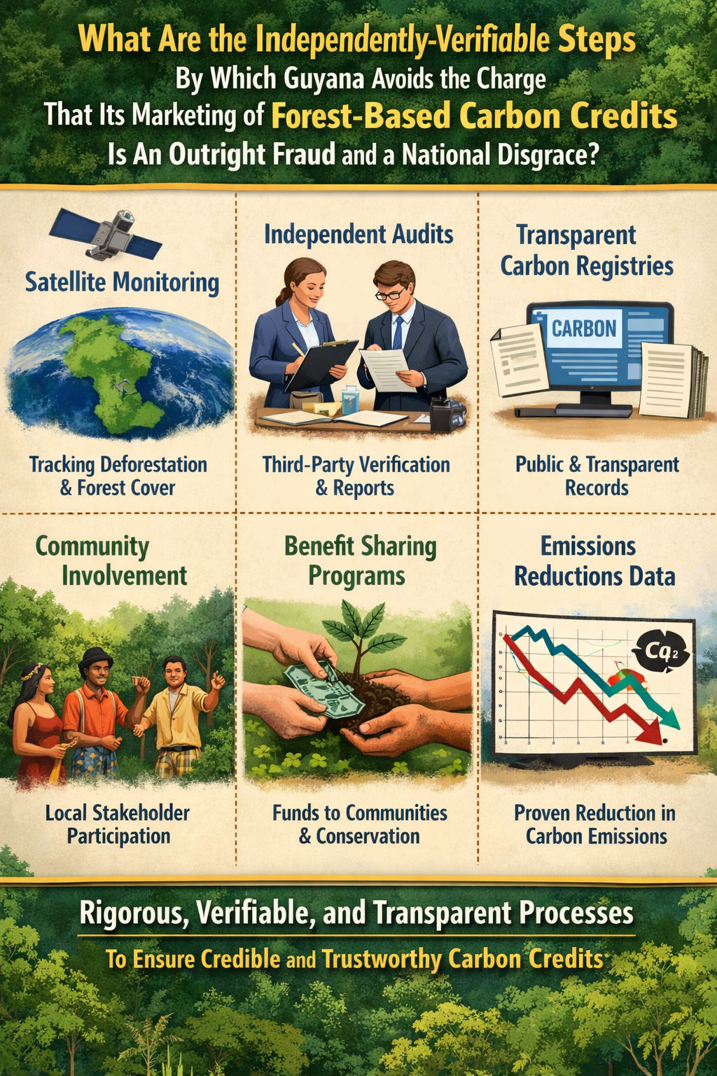On 19 March, Kaieteur News carried a Department for Public Information report that Guyana has again sold jurisdictional forest-based carbon credits (https://kaieteurnewsonline.com/2026/03/19/guyana-sold-carbon-credits-to-19-airlines-under-lcds-framework/). No price has been reported, nor any transactional costs which must be carried by Guyana for the entity, which makes the estimate of how many carbon credits are available for what period, or for an independent auditor.